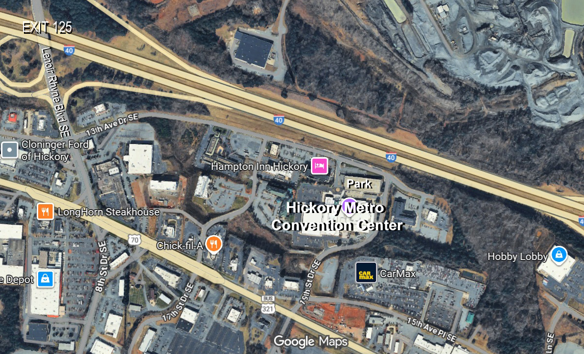 The convention center is at 1960 13th Ave Drive SE, Hickory, NC.